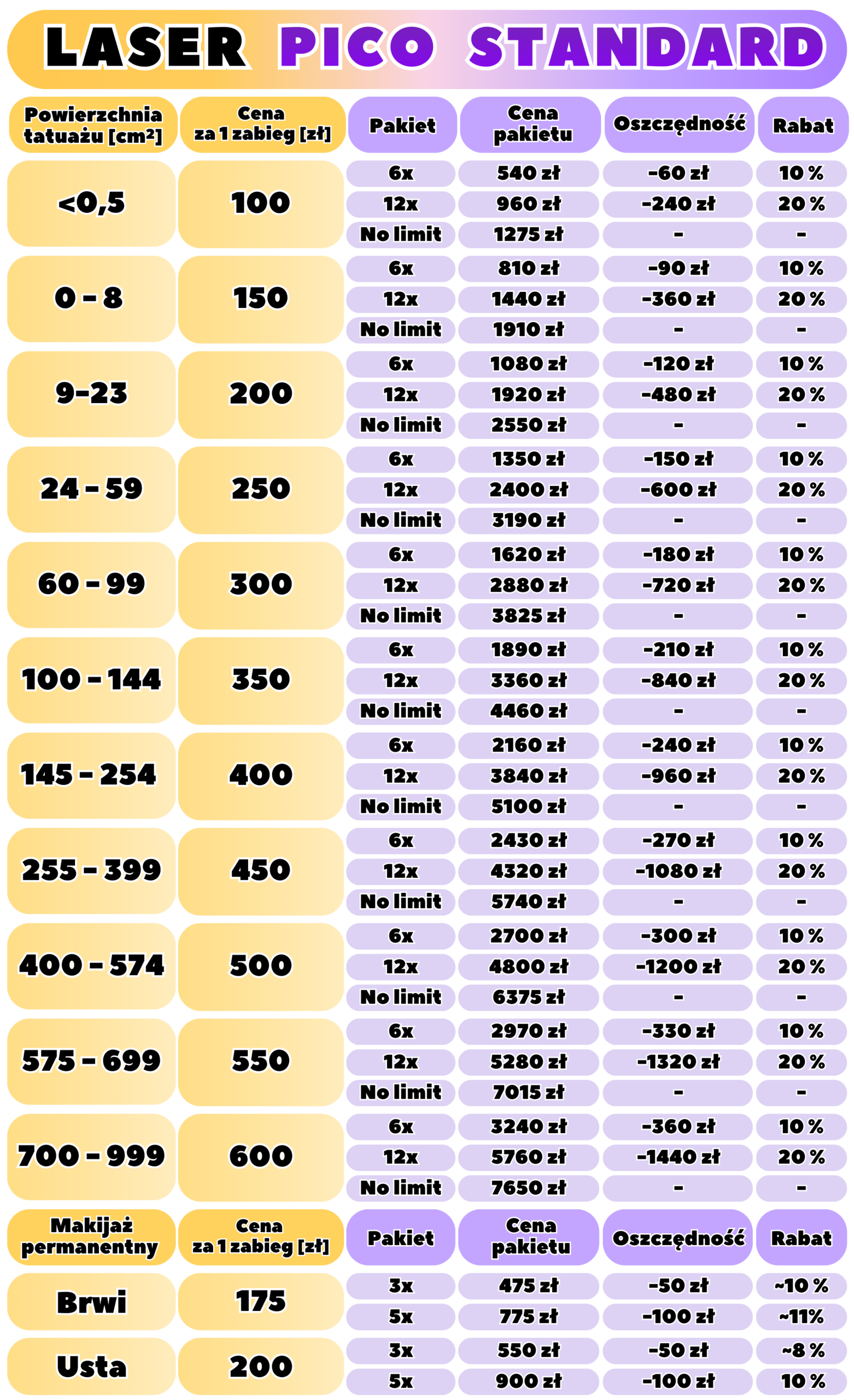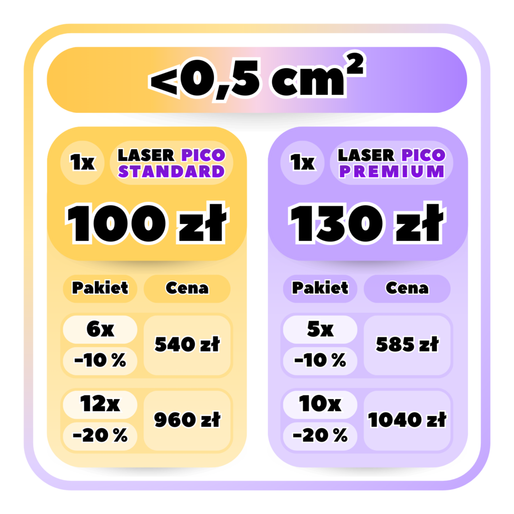 Pod koniec 2025 r. trafiły do nas dwa nowe lasery do usuwania tatuaży. Pierwszy z nich oferujemy w niższej cenie (opisane jako Pico Standard), aby nadal spełniać nasze założenia w kwestii atrakcyjnej ceny.