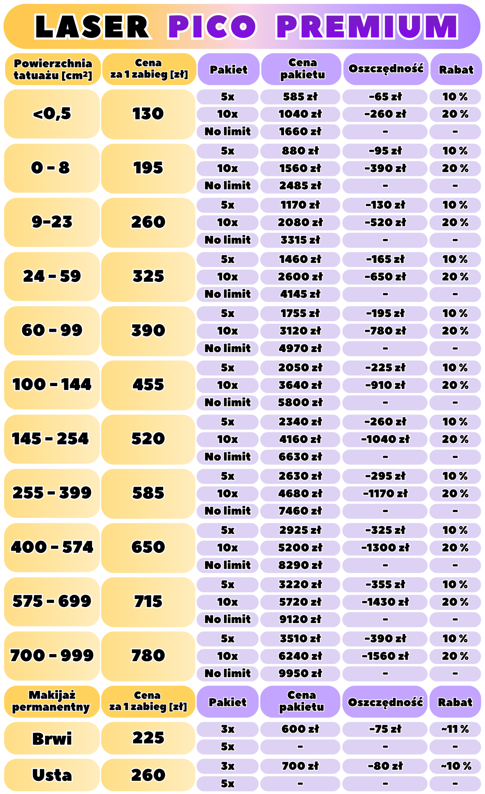 - otrzymasz rabat 50 zł przy usuwaniu drugiego tatuażu podczas tej samej wizyty
